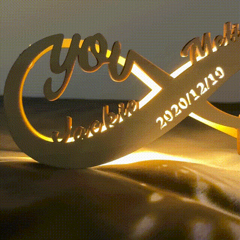 Personalisierte Infinity You and Me Wood Art Led Light (Ich erinnere mich an den Tag, an dem wir uns trafen)